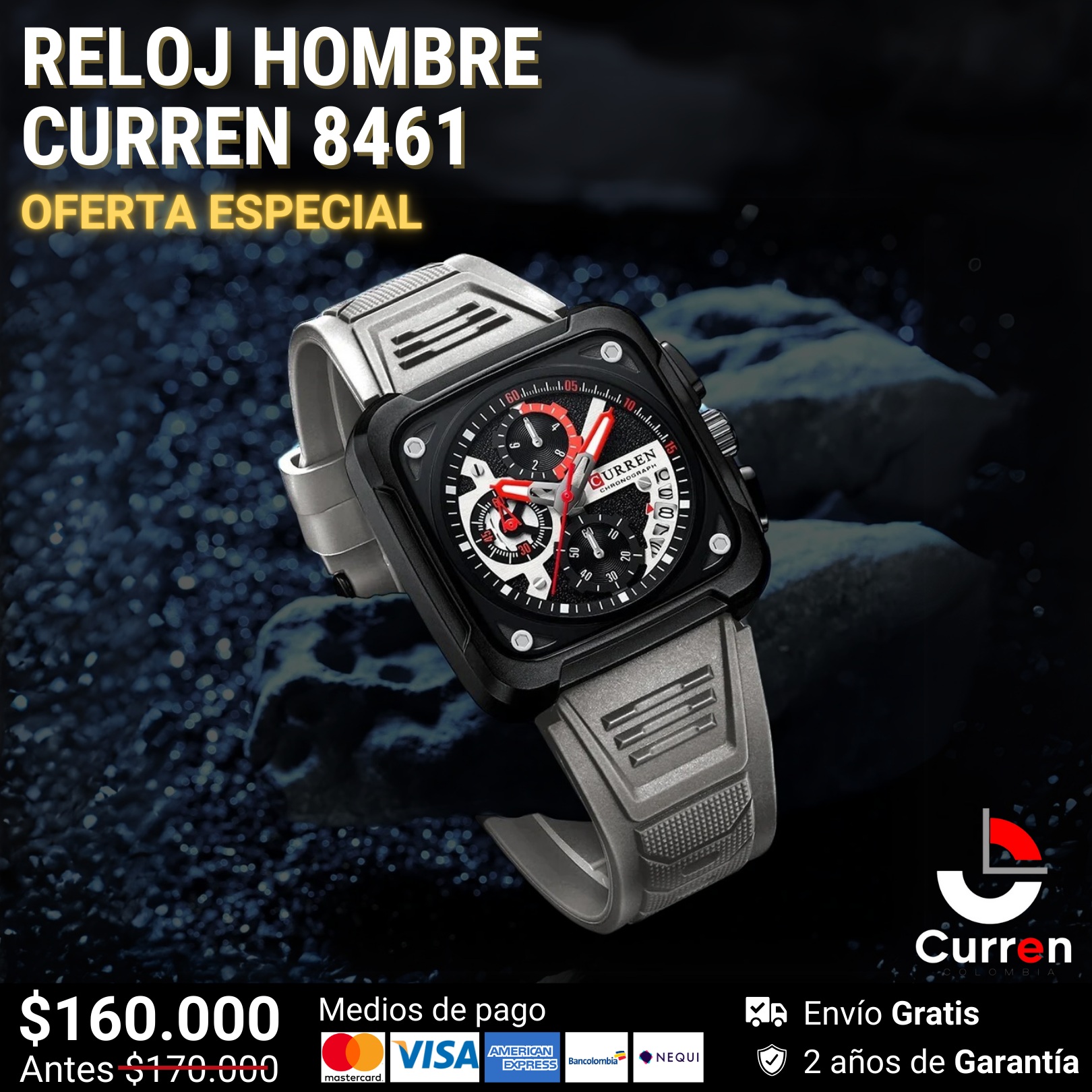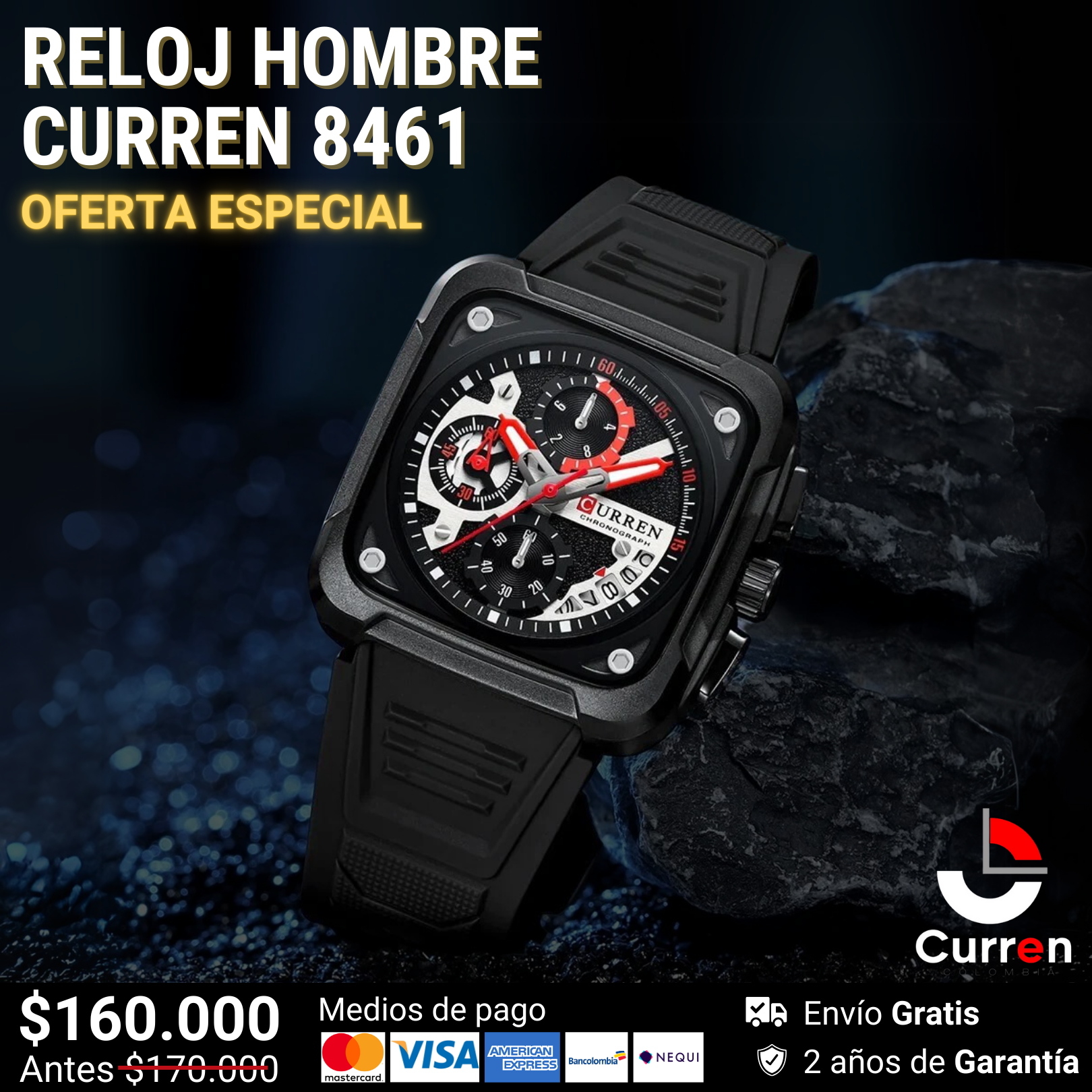 Reloj De Hombre Curren 8461 + Esfero Curren+ Bolsa de Regalo